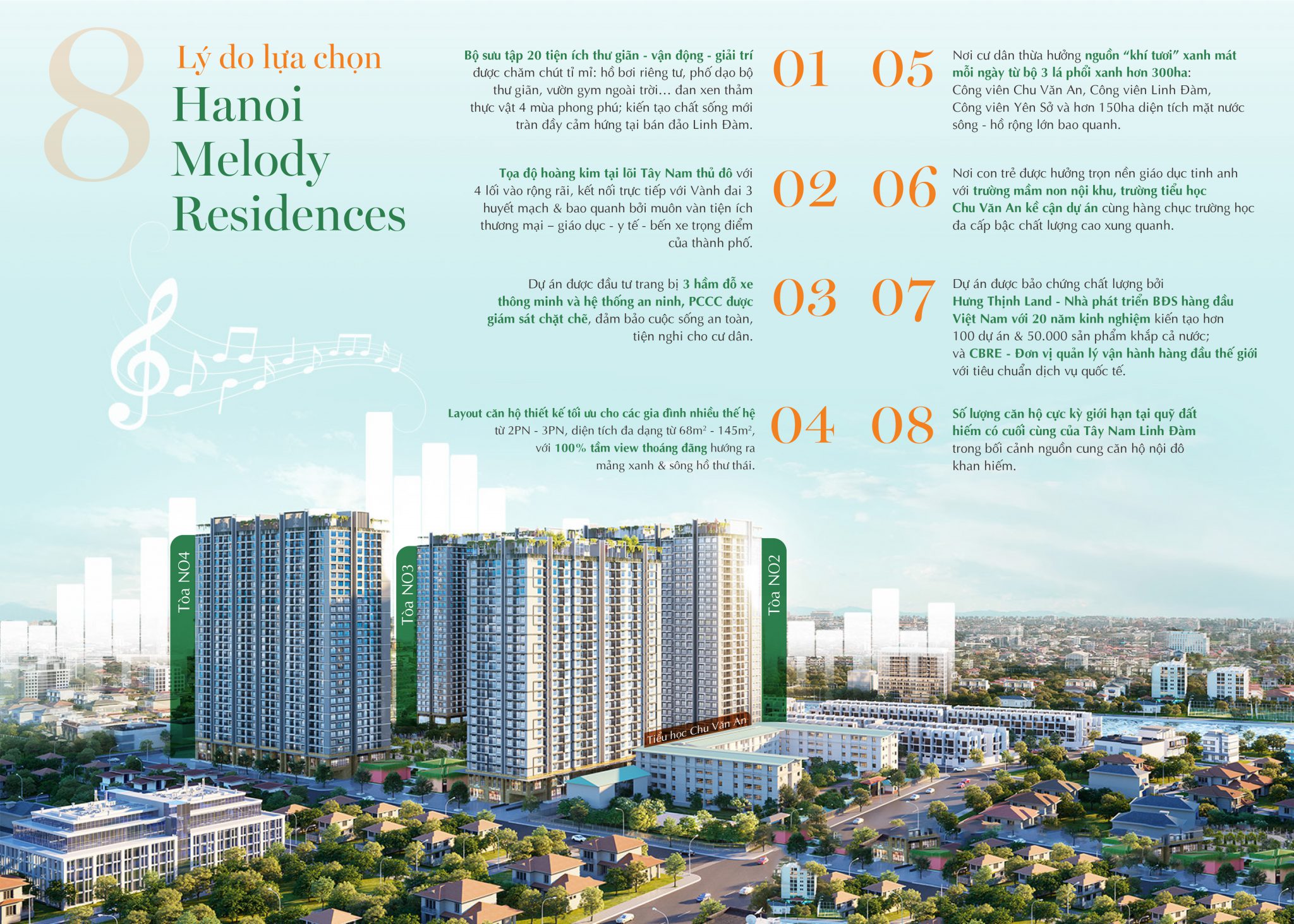 HaNoi Melody Residences là tổ hợp thương mại và căn hộ cao cấp nhất khu đô thị Linh Đàm do tập đoàn Hưng Thịnh làm chủ đầu tư. Dự án Hà Nội Melody Linh Đàm gồm 4 tòa tháp chung cư cao 29 tầng được thiết kế hiện đại và tinh tế với hơn 2000 căn hộ cao cấp có diện tích đa dạng từ 68m2 đến 145m2, công năng từ 2 đến 3 phòng ngủ.